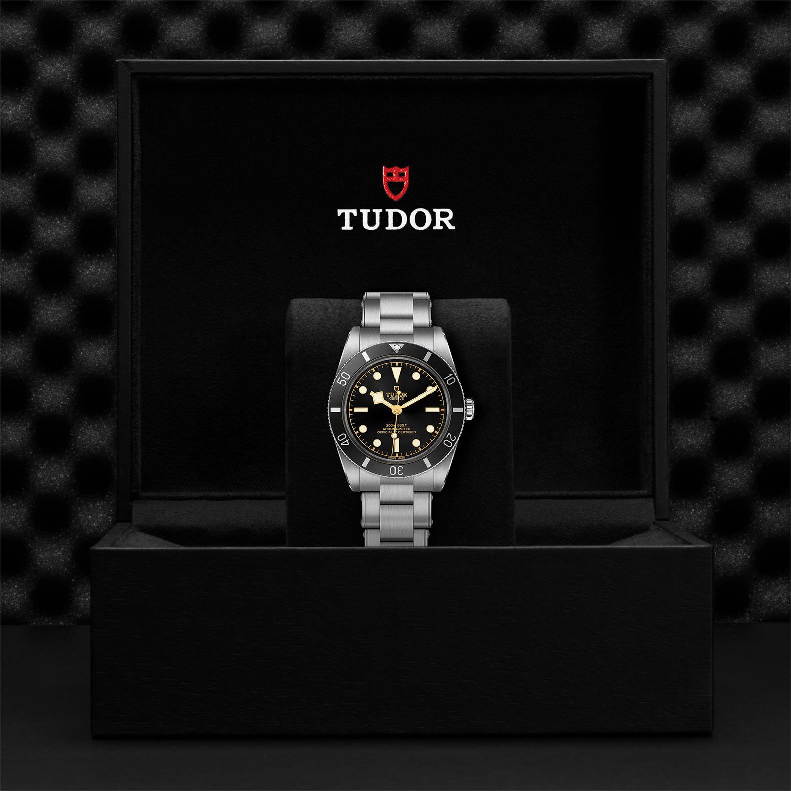 Il Black Bay 54 è il modello più fedele al primissimo orologio subacqueo di TUDOR, la referenza 7922, che sia mai stato creato finora. La cassa di 37 mm riprende le proporzioni classiche di un tempo, ma racchiude nel Calibro di Manifattura MT5400 tutto il know‑how moderno di TUDOR e vanta un’impermeabilità fino a 200 m.